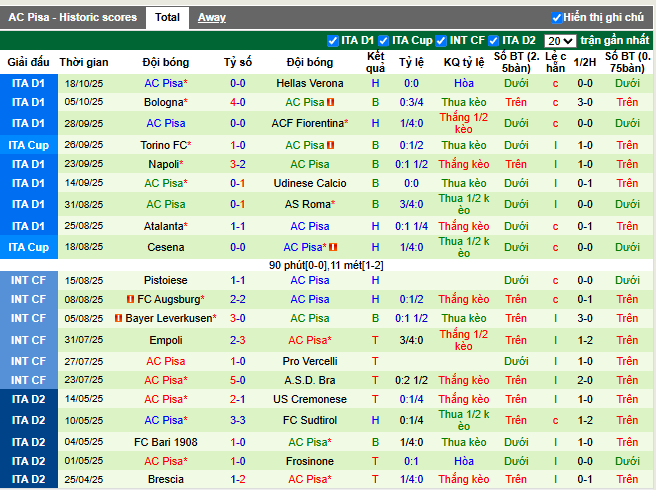 Thực tế, cũng khó trách AC Pisa bởi đội bóng này đã phải đối mặt với lịch thi đấu quá nặng từ đầu mùa. Đội khách đã phải chạm trán cả Atalanta, AS Roma, Napoli, Fiorentina và cả Bologna. Do đó, việc đội khách chưa lần nào được hưởng niềm vui chiến thắng ở mùa giải năm nay cũng là điều hoàn toàn dễ hiểu.